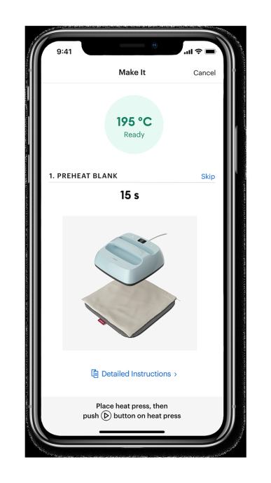 A tako je jednostavno! Podesite željenu temperaturu i vrijeme, za nekoliko minuta ćete postići željenu temperaturu. Nakon što svojim kreativnim crtalom postavite motiv na željenu tkaninu, uključite EasyPress. Lagano pritisnite i kada se oglasi zvučni signal, gotovi ste!