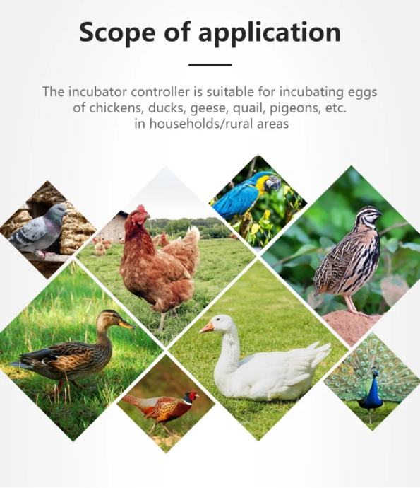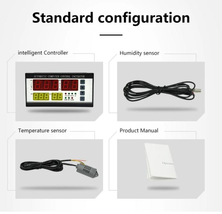 5.Number of signal-output: 7, (over-temperature, temperature control, insufficient temperature, egg left-turning, egg right-turning, humidity control, alarm)
