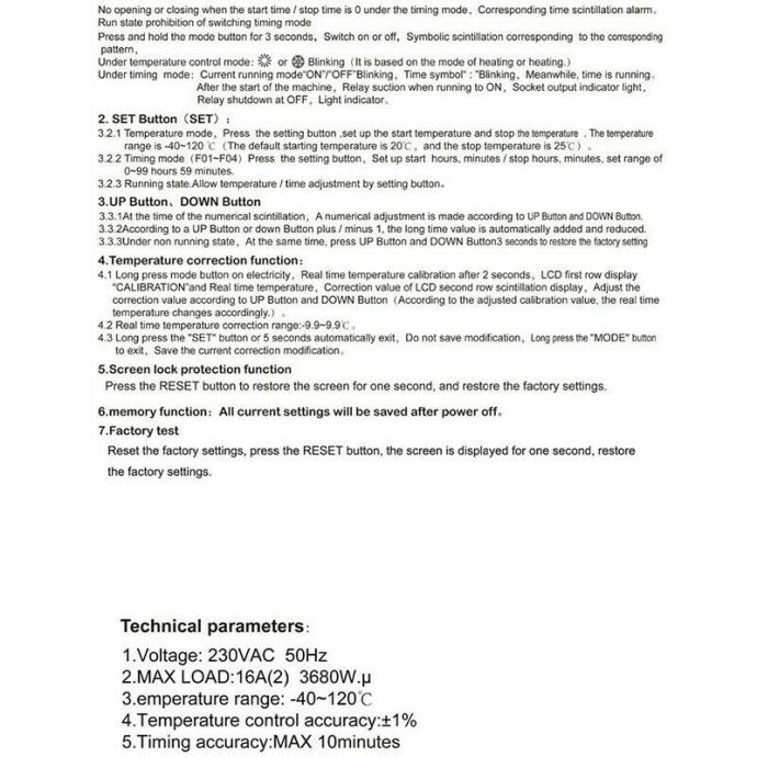 Funkcija timera - može raditi kao ciklički timer (funkcija F04). Timer nema stvarno vrijeme u smislu da možete odrediti vrijeme u danu u koje će se upaliti ili ugasiti nego samo trajanje uključenja ili isključenja.