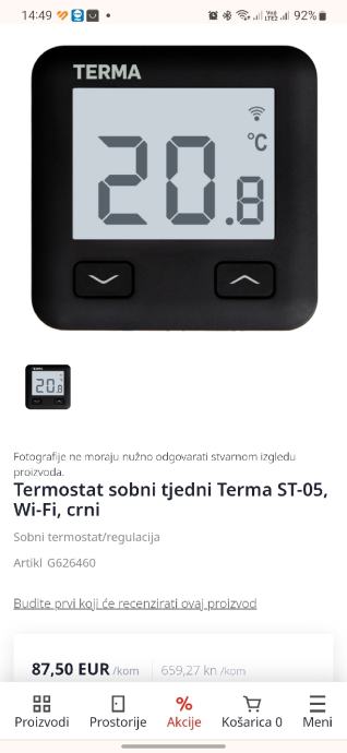 Prodajem novi ne korišteni sobni termostat Terma T10B230WIFI crne boje za sve vrste grijanja.