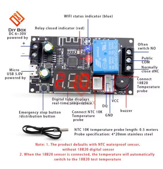 Termostat WiFi Tuya XY-WFT1 WFTX regulator +LED Sonda inkubator grijanje hlađenje 6v-30v 220vAC Relej valionik Digitalni