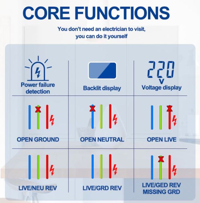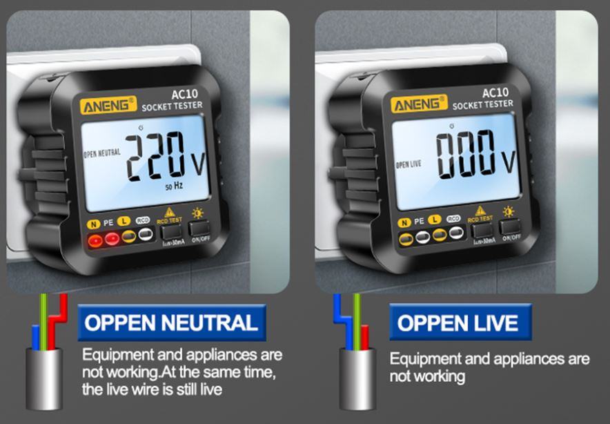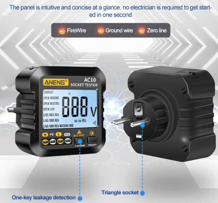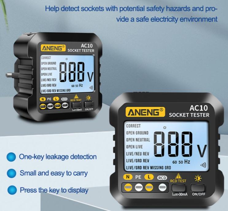 Tester RCD LCD 30mA šuko 220v utičnica Detektor Faza Nula Zemlja