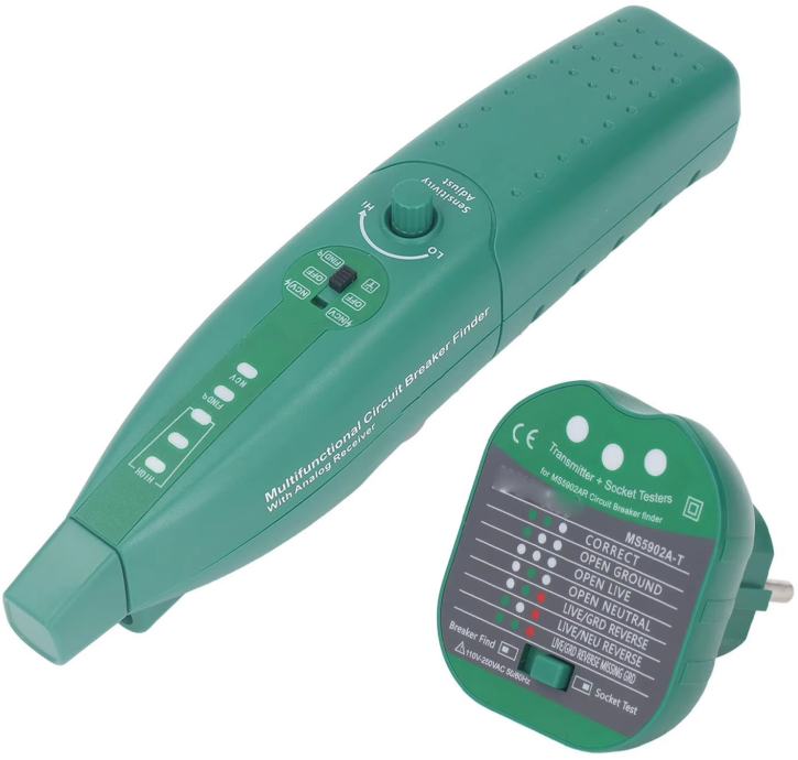 MS5902A-T tražilica/tester utičnica koristi se za pronalaženje ispravnog prekidača ili osigurača i testiranje utičnice. Više nećete imati problema s pronalaženjem električne instalacije, utičnice ispravnog prekidača koji napaja AC utičnicu ili rasvjetno tijelo.