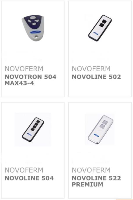 • Novoferm Novomatic 403 / Novomatic 413 / Novomatic 423/ Novomatic 423 Accu / Novomatic 553 / Novomatic 553S / Novomatic 563S / Novomatic 803 / Novomatic 803 S / Novoport I / Novoport II / Novoport III / Vivoport I / Vivoport II / NovoGate i NovoSwing.