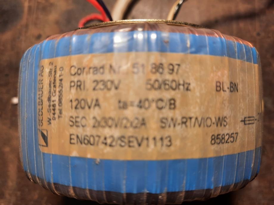 Prodajem toroidni trafo, ispravan, 120VA, 220/2x30V, 2x2A.