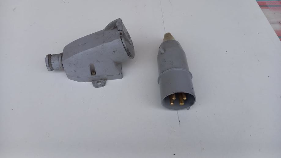 Prodajem trofazni četveropolni utikač i utičnicu za jačinu struje do 32a ispravan i bez mehaničkog ili električnog oštečenja .Boja je oguljena jer je stajalo među alatom kao rezerva.