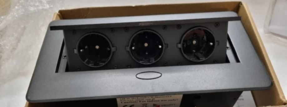 NOVA nekorištena ugradbena utičnica izrađena od kvalitetnih i otpornih materijala u crnoj. Ugradna preklopna utičnica opremljena je s 3 schuko konektora i s 1,5m kabela za jednostavno instaliranje.