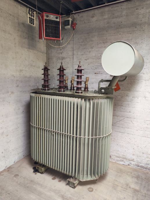 Prodajemo rabljeni uljni transformator ASEA LEPPER, tip TOHK. Radi se o trofaznom transformatoru snage 630 kVA, frekvencije 50 Hz. Napon na primarnoj strani iznosi 30000/10000/28750 V, a na sekundarnoj 400/9583 V. Struja na primarnoj strani je 12,1/36,4 A, a na sekundarnoj 909 A. Rashladno ulje osigurava hlađenje tipa ONAN. Ukupna masa transformatora je 2500 kg, a masa ulja 800 kg. Spoj namota je Yzn5, izvedba DB.
