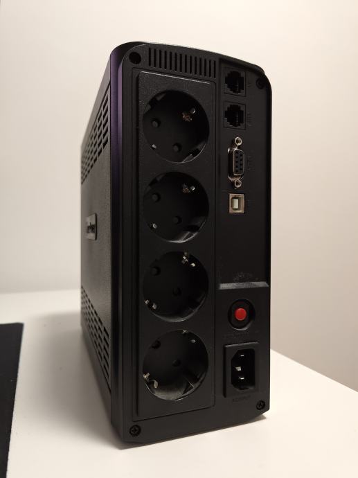 UPS 390W izlazna snaga, 4 šuko, 1Gbps Ethernet. LCD, 8h da se napuni, 10 min može držati uređaje na 50% opterećenja, 1 minutu na 100%, dovoljno da se spreme podaci prije gašenja u slučaju nestanka struje.