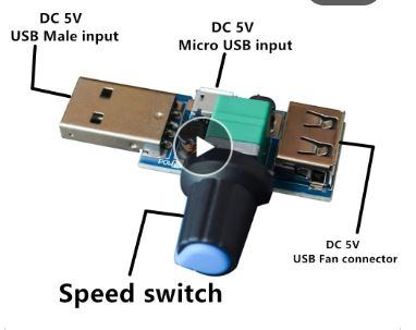 Regulator okretaja motora namjenjen je za regulaciju vrtnje malih USB ventilatora do max. snage 5W