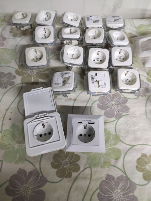 prodaje se 18 utičnica, jedna utičnica sa dodatnim ulazom za usb i jedna sa poklopcem, pet šaltera 4 su serijski 1 je izmjenični sa maskama jednostrukim i dvostrukim sve novo plus jedan fiksni priključak sve zajedno 00e
