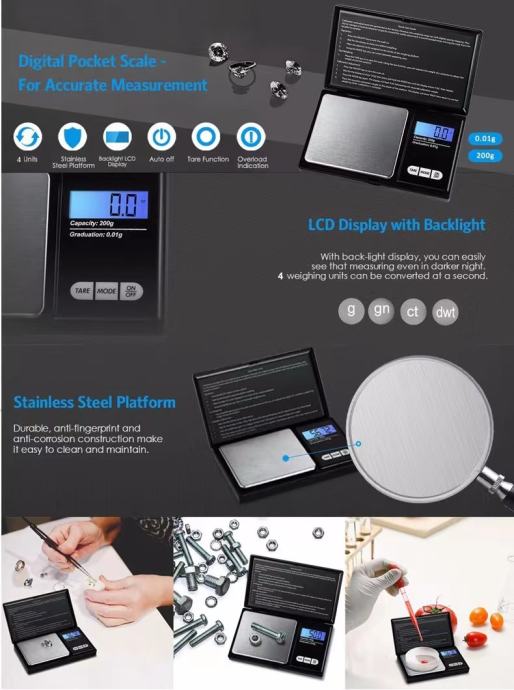 Vaga digitalna 500g preciznost 0.1g i 0.01g roba nakit ili 1Kg 0.1g