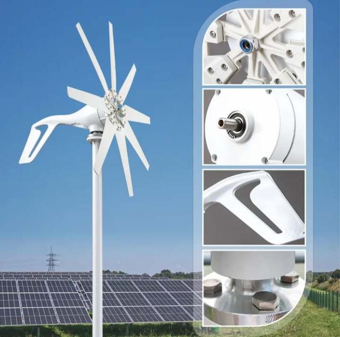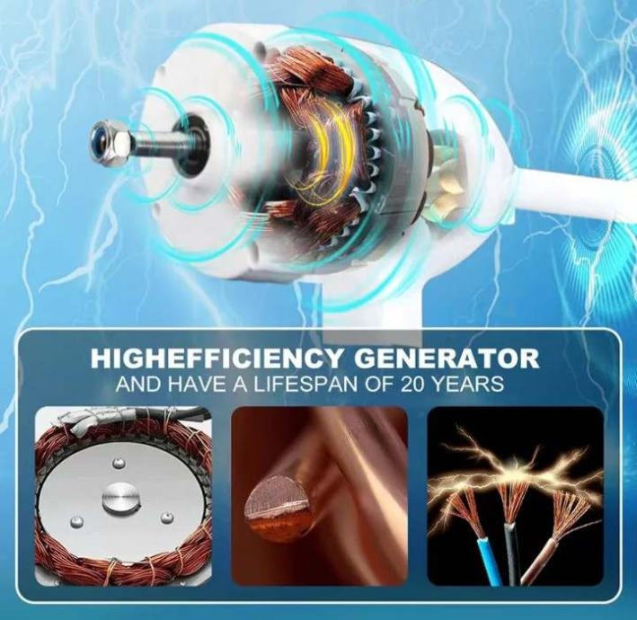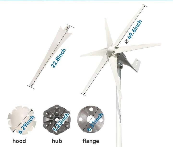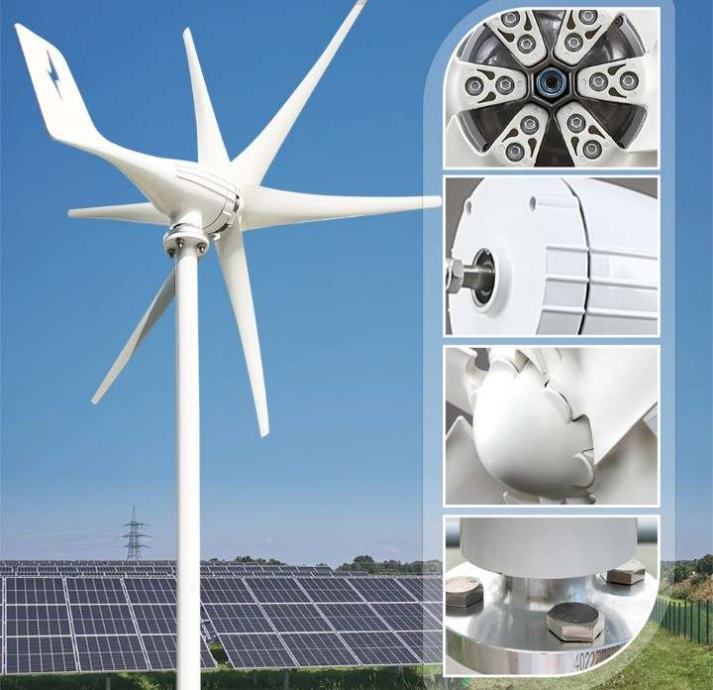 Dolazi u setu sa 5 lopatica ili 8 lopatica tako da vec pri vjetru 3m/sek...radi struju...