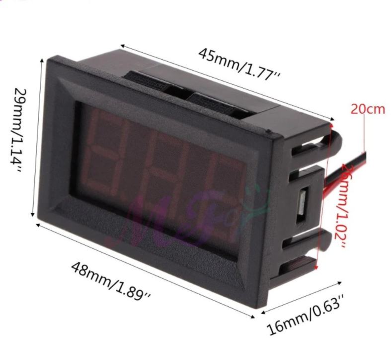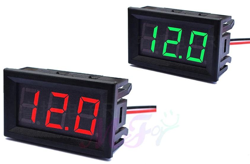 Voltmetar za mjerenje napona struje od 0 -100V crveni i zeleni zavisno o načinu spajanja voltmetra sa tri žice. Pogodan za DC regulatore napona do 0 do 100V način spajanja žica vidljivo je na slikama oglasa