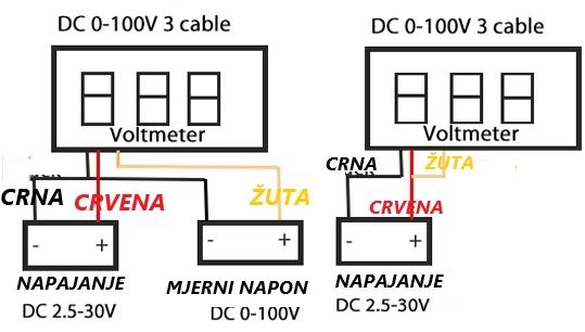 Voltmetar treba osigurati istosmjerni napon od 0-100V crveni i zeleni kao radni izvor energije.