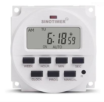 Vremenski prekidač tajmer nagradni za paljenje rasvjete, navodnjavanje, električnog pastira, vabilica, hranilica i druge potrebe gdje je potrebna regulacija vremena paljenje i gašenja električnih potrošača AC 220 V sedmodnevni podesiv 7 dana od 1 sekunde na dalje.