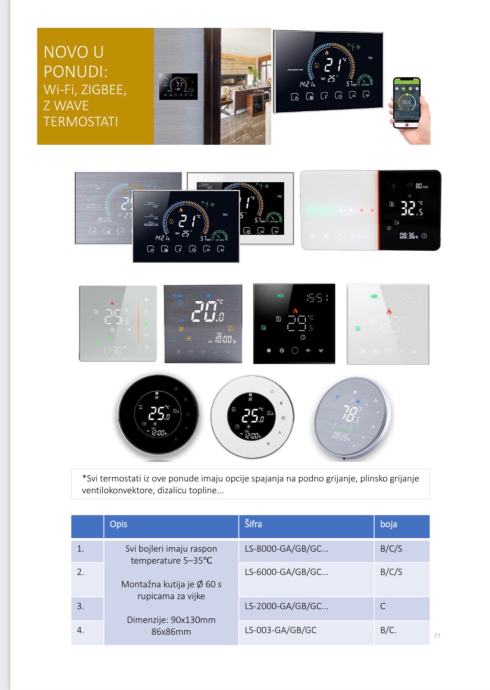 Wi-Fi termostati, upravljanje preko mobilne aplikacije, grijanjem i hlađenjem za sve tipove grijanja.