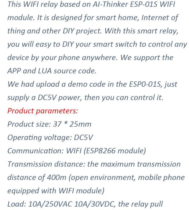 WiFi Relej Modul ESP8266 +ESP-01 5V Things Smart Home Remote Switch
