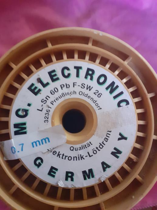 Prodajem kolut žice za lemljenje 0.7 mm, 3kg, stara zaliha, njemačka kvaliteta cijena 180 €.