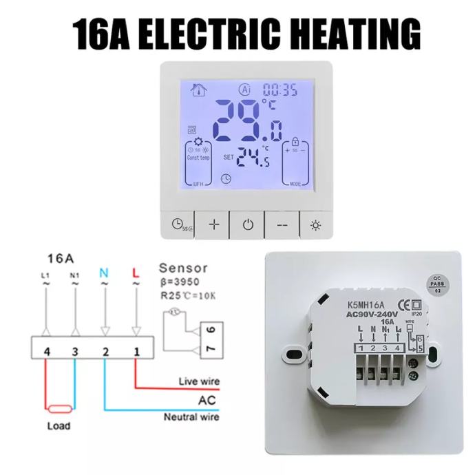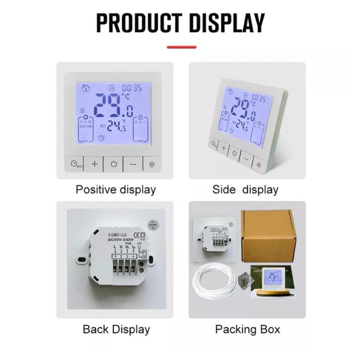 LCD Display: The intelligent thermostat is equipped with a color LCD screen and an sensor, providing accurate and clear temperature readings, allowing for easy monitoring of your environment. The sensor cable is included in Electric Heating mode.