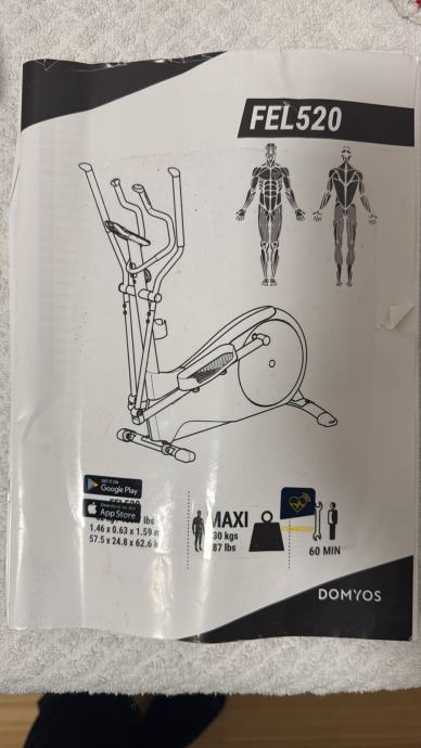 Prodajem rabljeni eliptični trenažer Domyos 520 u dobrom stanju. Sprava je idealna za kardio trening kod kuće s digitalnim kontrolama za praćenje napretka. Čvrste je konstrukcije s prepoznatljivim crno-žutim detaljima, podesiva i jednostavna za korištenje.
