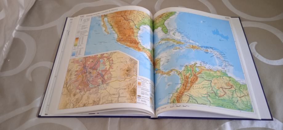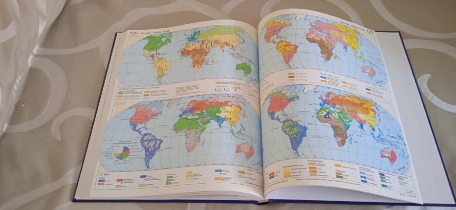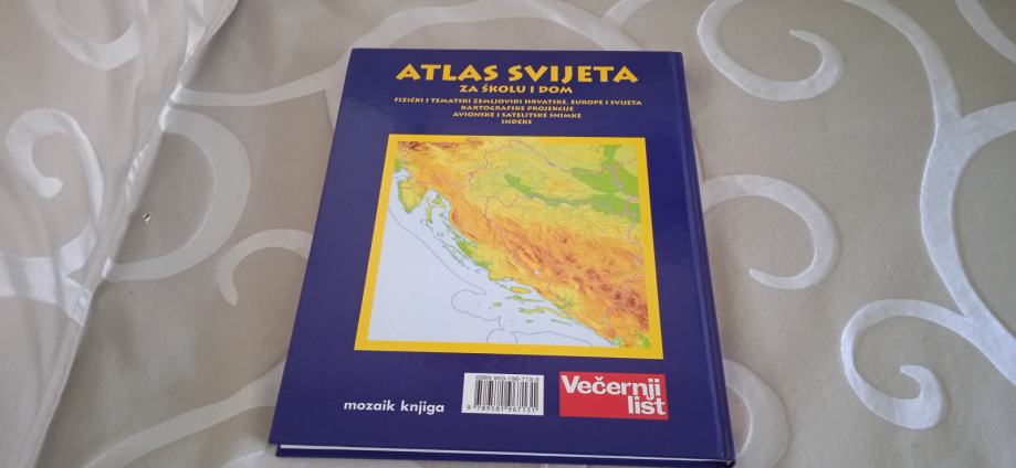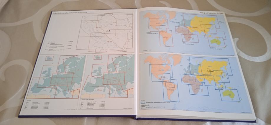 Atlas svijeta za školu i dom sadrži fizičke i tematske zemljovide Hrvatske, Europe i svijeta, kartografske projekcije, avionske i satelitske snimke.