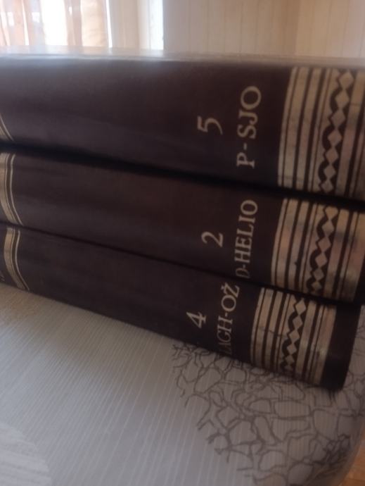 Prodajem lot od tri komada enciklopedija leksikografskog zavoda, broj 2,4 i 5. Stanje vrlo dobro. Cijena za sva tri. Plačanje na račun ili gotovina.