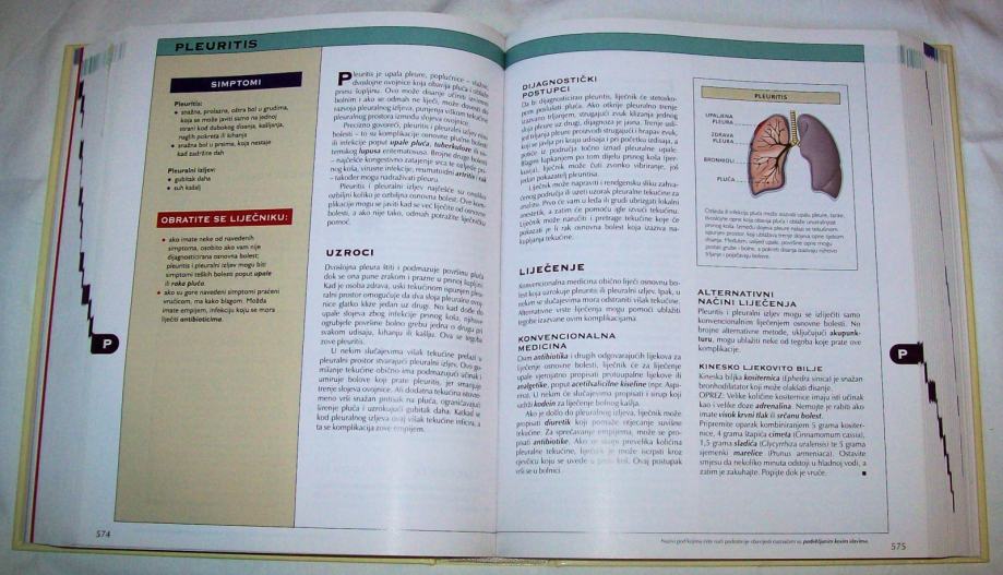 Veoma opširan priručnik o zdravlju koji sadrži upute za prvu pomoć, slikovni dijagnostički vodič, opise sindroma, vodič kroz alternativne načine liječenja i 800 konvencionalnih i alternativnih lijekova koji se najčešće propisuju.