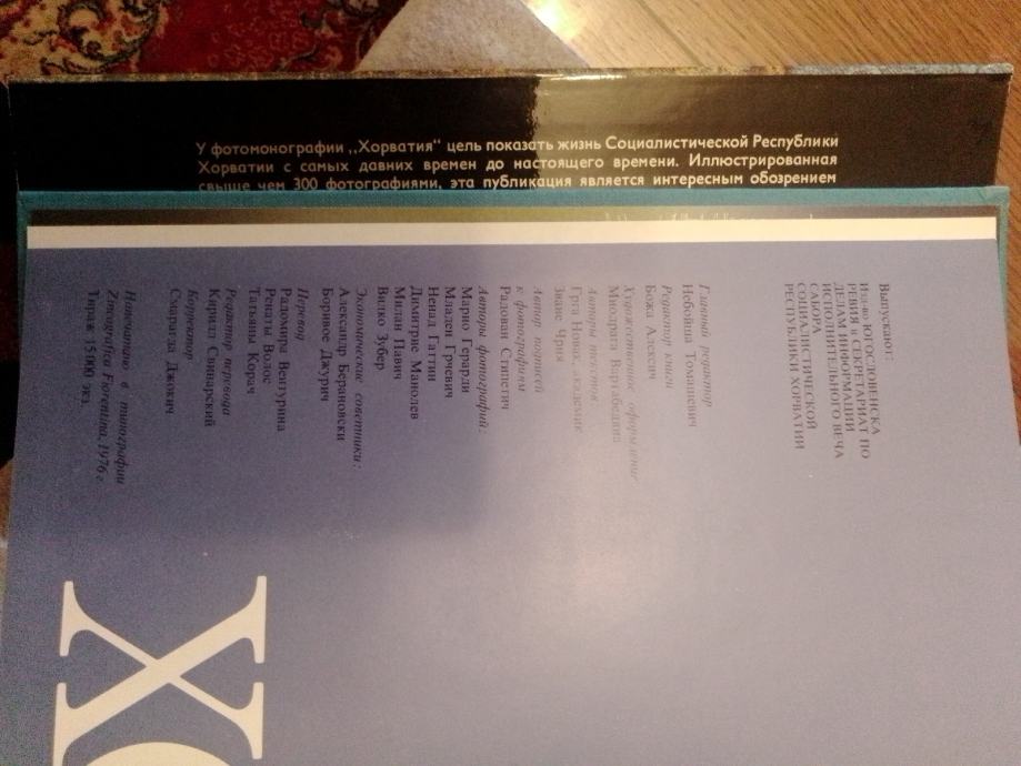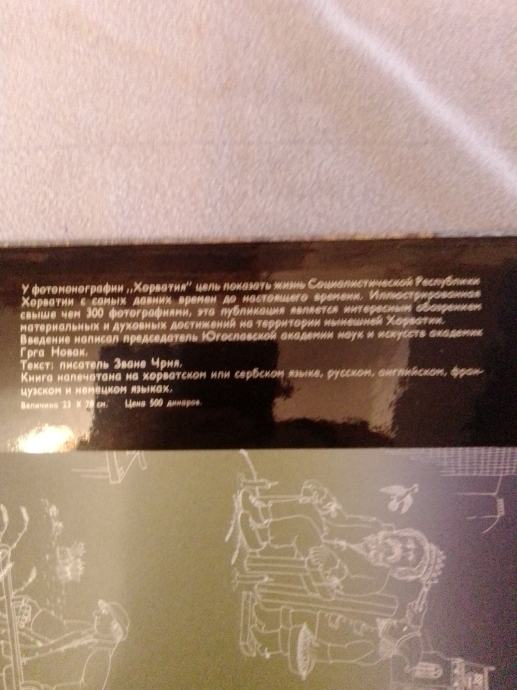Bez ikakvih oštečenja u originalnom stanju Opisuje SR Hrvatsku kroz sve njezine regije(Slavoniju ,Liku, Dalmaciju,HR Zagorje ....)na ruskom(za Rusiju je i rađeno)jeziku i pismu sa 300 prekrasnih fotografija u maloj nakladi od 15ooo kom.Šaljem poštom uplatom na moj tekući račun+ troškovi poštarine