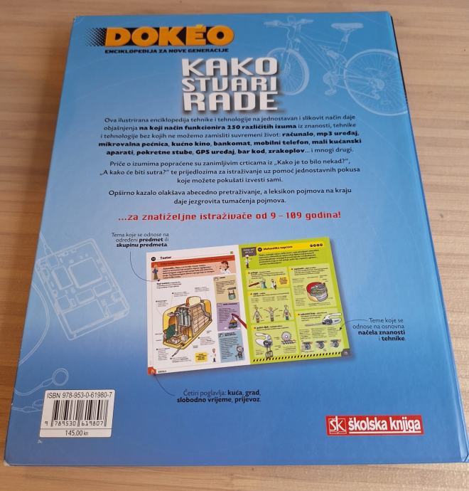 Tehnološka dostignuća, koja se tumače u knjizi, svrstana su u četiri cjeline: u kući, u gradu, rekreacija i prijevoz. Tako se u enciklopediji može naći opis rada i načelo funkcioniranja računala i njegovih tehničkih komponenti, malih kućanskih aparata (mikrovalna pećnica, toster, perilica za posuđe, fen, vodokotlić...), kućanskih uređaja za zagrijavanje i hlađenje, glazbala i uređaja za prijenos zvuka, medicinskih uređaja, mobilnih telefona, pokretnih stepenica, lasera, različitih vozila (bicikl, kamion, avion, helikopter, brod, svemirska letjelica).