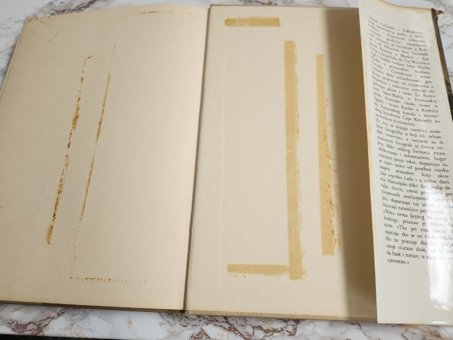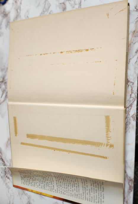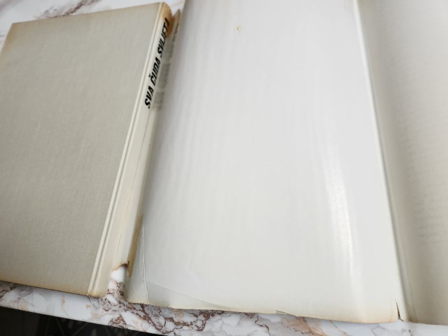Vanjski papirnati omot oštećen i lijepjen, dok je knjiga i unutrašnjost dobro očuvana. Prva i zadnja strana požutjela od vremena, ostalo normalno