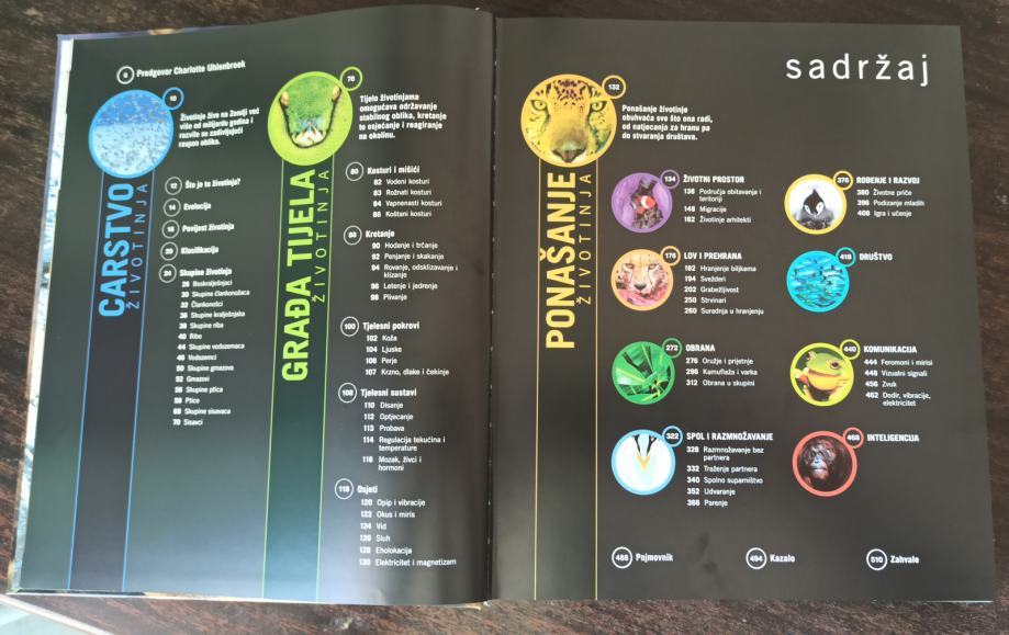 Prodajem novu, nekorištenu (u originalnoj foliji) i u izvrsnom stanju knjigu SVIJET ŽIVOTINJA - SVEOBUHVATNI SLIKOVNI VODIČ O ŽIVOTINJAMA I NJIHOVU PONAŠANJU. Autor knjige je Charlotte Uhlenbroek. Knjiga je u tvrdom uvezu, veličine 31 x 26,5 cm, ima 512 stranica (sve u boji i papiru vrhunske kvalitete) te je ilustrirana sa mnogo prekrasnih fotografija životinjskog svijeta. Izdavač je Profil. Opis autora knjige:"Svijet životinja vodi nas ravno u srce prirode kako bi nam otkrio izvanrednu raznolikost životinjskog ponašanja.Puna uzbudljivih bliskih susreta koji otkrivaju spektakularne tajne života u divljini, ova knjiga predstavlja očaravajuće istraživanje životinja i načina na koji se ponašaju. Od epskih migracija do intimnih rituala udvaranja, od zadivljujućih tehnika lova do domišljatih obrambenih strategija, sav život životinja nalazi se ovdje".
