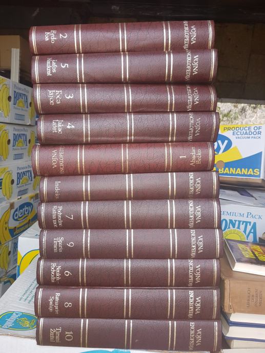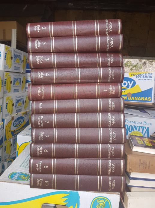 Sačuvana vojna enciklopedija 10 svezaka plus dodatni indeks. Znači kompletna s dopunskim izdanjem što je rijetkost pronaći.
