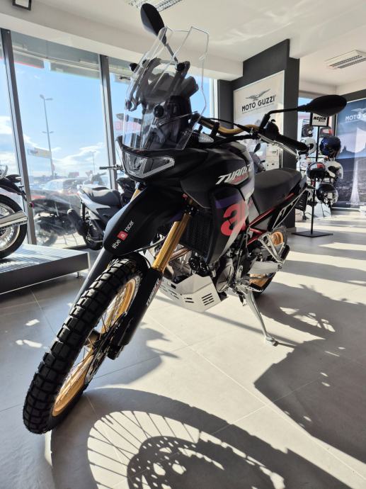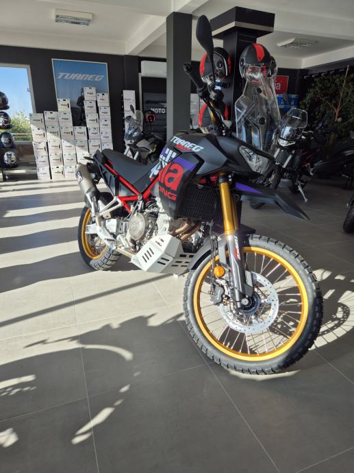U međuvremenu, Aprilia Tuareg 660 nastavlja evoluirati, zahvaljujući Euro 5+ agregatu, redizajniranom prednjem svjetlosnom sklopu i novim racing bojama.Aprilia Tuareg Rally, nova kraljica terenskih dvocilindričnih motocikala, dizajnirana je za pustolove koji nisu spremni na kompromise. Iskustvo odjela Aprilia Racing i višestruki prvak Jacopo Cerutti udružili su se kako bi zadovoljili najzahtjevnije enduro vozače, pružajući maksimalne performanse i uzbuđenje na svim vrstama terena.