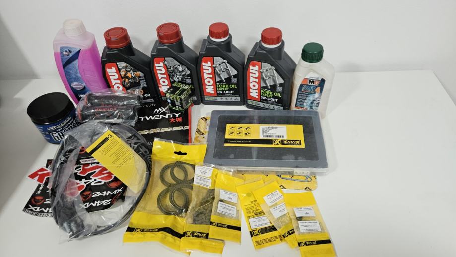 Komplet servis (filter twin air ociscen nauljen, ulje u masini motul 7100, ulje u getribi transoil 10w40, filter ulja, antifriz silicate free)