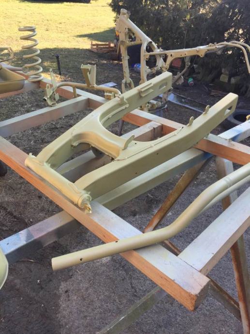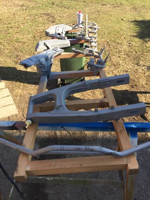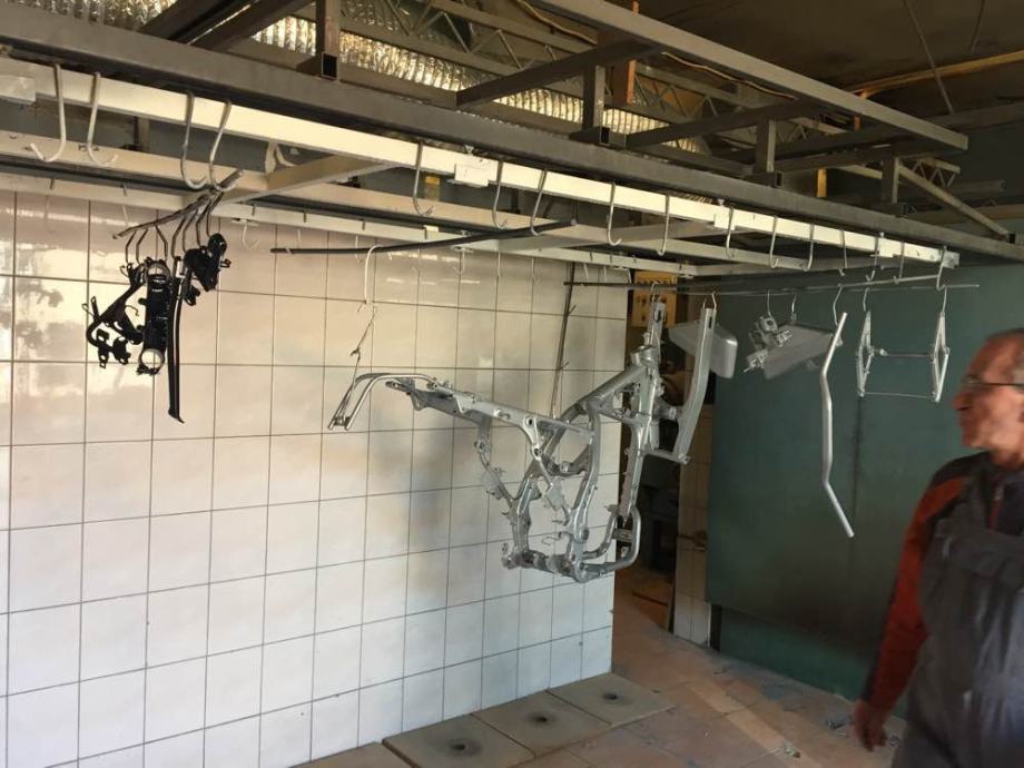 šasija i ostali dijelovi,ispjeskareni, zaštičeni dvokomponentnom zastitom, i potom plastificirani. A ostatak motora lakiran u bijelu briljant,perla boju. Naljepnice pod bezbojnim lakom.