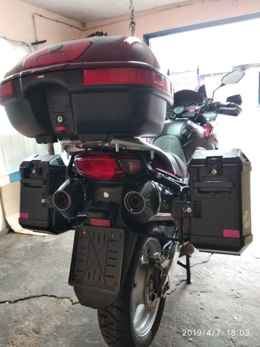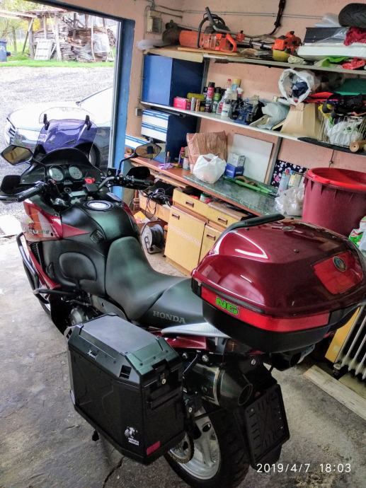 stražnji kofer orginal Honda s naslonjacem, bocne kofere hepco becker plus nosaci, ralica, centralni nogar, poviseni puing vizir plus nastavak, maglenke, punjac mob., usb,