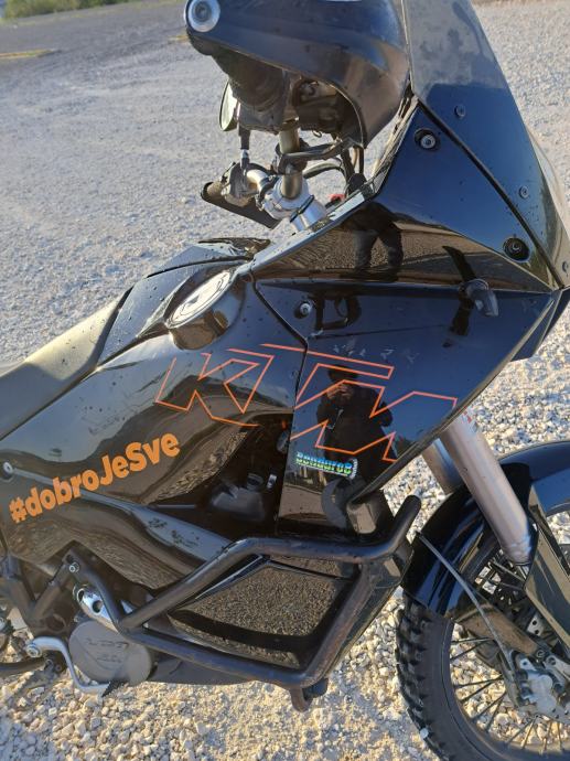 Drugi sam vlasnik, uvezen iz Austrije kao nov. Vozio sam njime off road i ima estetskih nedostataka. Meni su to sitnice. Jednostavno volim taj motor, brinuo sam o njemu kao o bebici. Upravo promijenjene tekucine, ulje i antifriz, sarvisirane prednje vilice, ulje i semerinzi. Gume su na 90%....skoro nove.