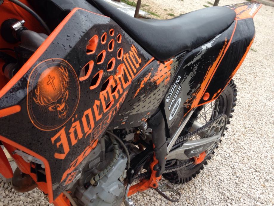Od opreme motor ima:hinson poklopac kvačila i narančaste ktm handguardse.