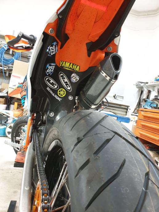 Motor ima dva seta kotaca (cesta+staza), potpuno otovreni ispuh (top “akrapovic”) al uz njega dajem i njegov otiginal top. (Sve vidljivo i prilozeno na slikama)