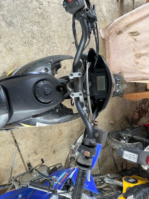 Vozio se po šumi i makadamu, pali na kurblu i anlaser, sa motorom dajem nosač mobitela (odličan za mapiranje ruta za Garmin ili Stravu app), ceradu za motor, te alarm.