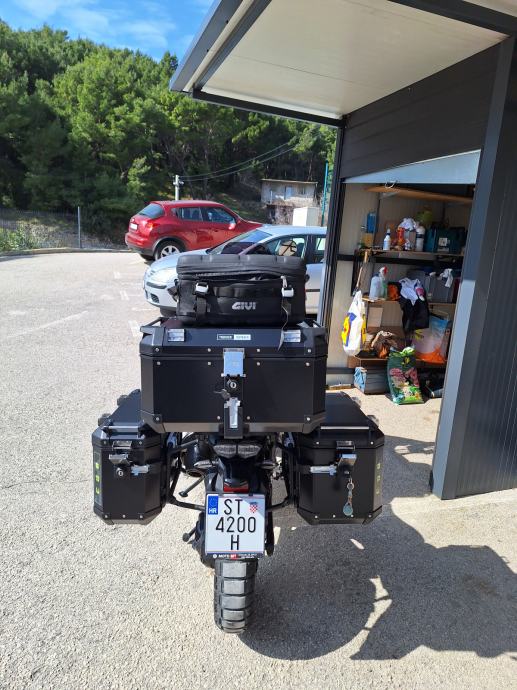 Uz motor ide i pripadajuća oprema: Givi 3 kofera, 3 torbe za kofer, tank torba, Givi tail bag-vodootporna, torbica za mobitel, nosac za Garmin xt zumo (bez gps-a).