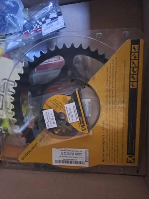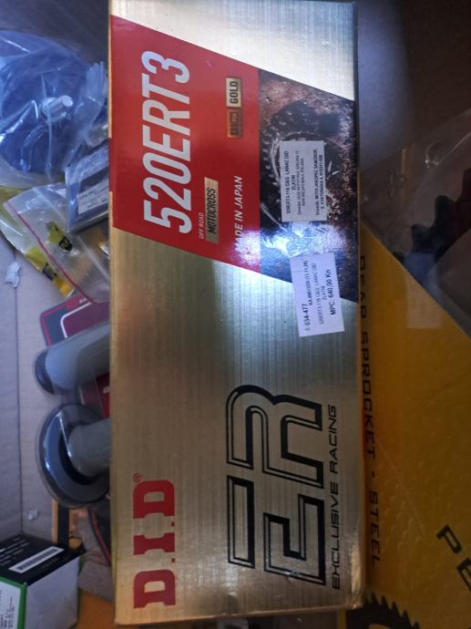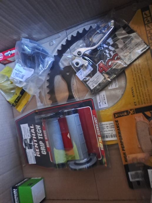 Uz motor dolazi novi prednji kocioni disk i vijci, disk plocice, prednji i zadnji lančanik i vijci za lančanik, d.i.d. zlatni lanac, sprej za lanac, ručica kočnice, ručke, dodatni filter zraka i ulje za filter, 4l 300v motul ulje i trokut za motor.