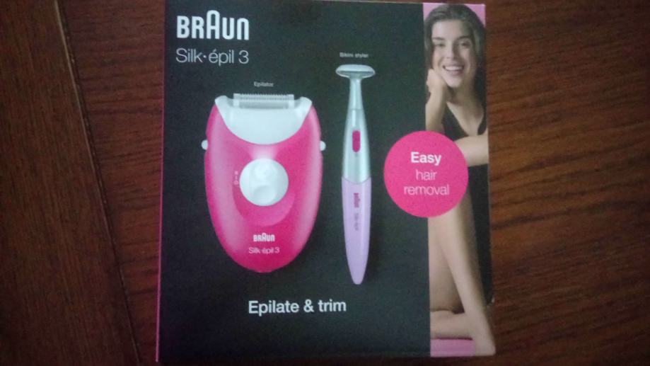 Korišten 2 puta. Sadrži epilator i trimer za bikini zonu. Epilator radi na struju. Ima lampicu koja pomaže lakšem uklanjanju i najsitnijih dlačica. Trimer radi na baterije.