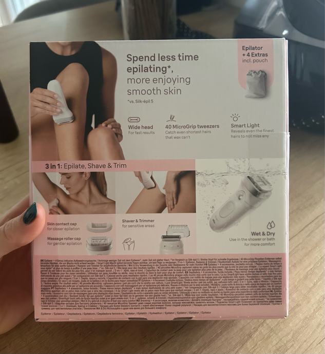 Braun Silk-épil 7 epilator pruža do mjesec dana glatke kože, učinkovito iu bilo koje vrijeme. Prikladan je za mokru i suhu upotrebu i ima široku glavu koja pokriva velike površine kako bi skinuo više dlačica (poput Braun Silk-épil 5) sa svakim potezom. Ovaj Braunov epilator bez kabela ima MicroGrip tehnologiju koja može uhvatiti dlačice ne duže od 0,5 mm. Uživajte u glatkoj koži kao nakon posjeta salonu, ali uz dodatnu udobnost zahvaljujući nastavku valjka za masažu koji može pomoći u smanjenju osjećaja boli. Recite zbogom neugodnom čekanju da dlačice ponovno izrastu, što je potrebno za druge metode uklanjanja dlačica poput depilacije. Epilator je dizajniran za praktičnost i eliminira potrebu za čišćenjem nereda ili posjetom salonu. Savjet: Osjećaj boli bit će manji ako epilator koristite u kadi ili pod tušem s toplom vodom. Dizajnirani da traju godinama: epilatori su proizvedeni u Njemačkoj.