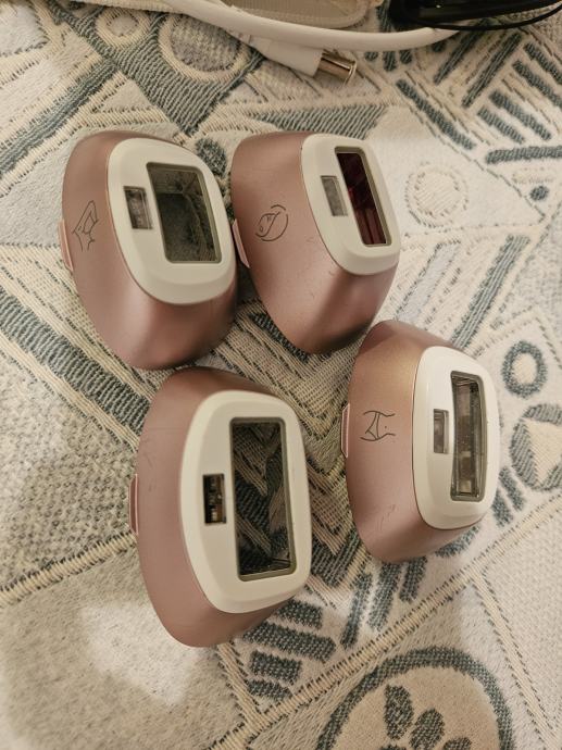 Četiri nastavka (Pazusi, bikini zona, tijelo, lice), bijela/rose gold boja, 450.000 bljeskova. Može se koristiti i bežično što je vrlo praktično.