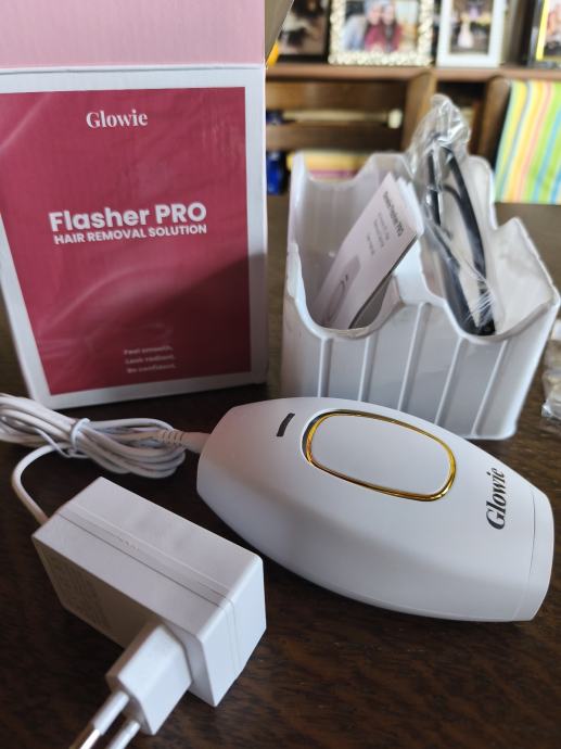 Prodajem novi Glowie Flasher PRO uređaj za trajno uklanjanje dlačica. Radi se o IPL tehnologiji (hair removal solution), a uređaj je bijele boje sa zlatnim detaljima. Dolazi s punjačem i svim originalnim dodacima. Stanje je novo.