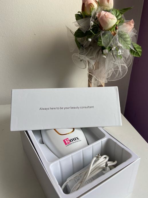Roux IPL laserski epilator za trajno uklanjanje dlačica. Pruža vidljive rezultate za samo 3 tjedna i vrlo je jednostavan za korišćenje. Ovaj epilator koristi testiranu IPL tehnologiju koja posjeduje sertifikat o ispravnosti i sigurnosti. Koristi se za sve dijelove tijela, potpuno je bezbolan i može da uradi preko 12.000 tretmana, što je oko 10 godina korišćenja. Epilator je korišten nekoliko puta, dobila sam novi na poklon pa ova prodajem vama.