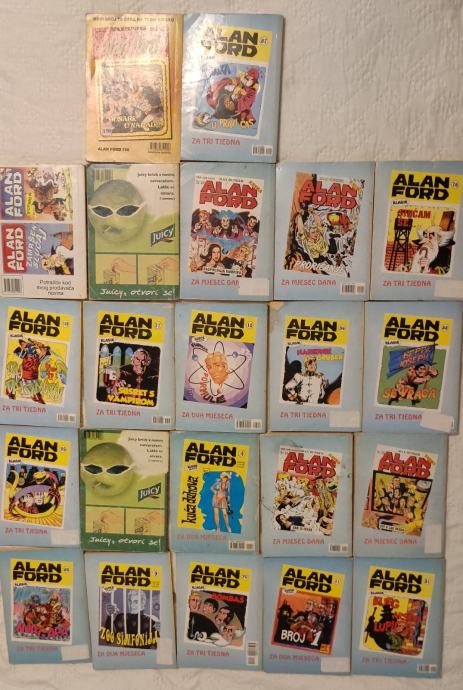 Prodajem komplet od dvadeset dva stripa Alan Forda. Uglavnom reprinti klasika. Među njima četiri specijala i isto toliko extra izdanja. Radi se o dobro očuvanim primjercima.