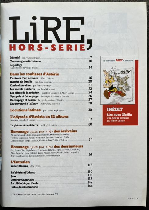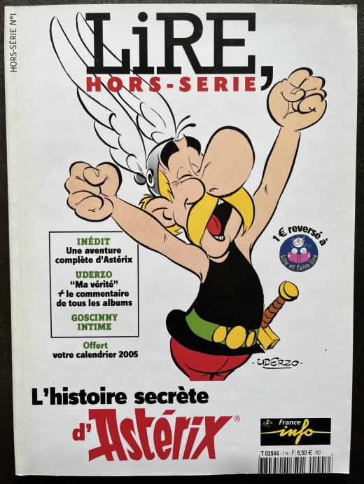 Kolekcionarima Asterixa nudim izuzetno rijedak i tražen časopis L'HISTORIE SECRET D'ASTERIX iz serije magazina LIRE, HORS-SERIE. Ovaj jedinstveni i luskuzni magazin na francuskom jeziku savršeno je očuvan, mekog uveza, dimenzija 28 x 20,5 cm, na 146 stranica te obiluje informacija i ilustrativnim materijalima od kojih su mnogi po prvi puta objavljeni samo u ovoj prilici.